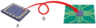 IC 칩을 직접 프린트 기판에 접속하는 방법으로 FCBGA(Flip Chip-BGA)라고 합니다. IC 칩의 전극 부분에 범프를 형성해 두고 프린트 기판측의 전극과 접속합니다. 와이어 본딩에 비해 공간을 절약할 수 있습니다.