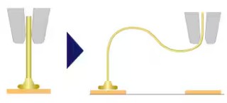 2.1st Bonding이 끝나고 2nd Bonding 지점으로 이동할 때 본딩 와이어를 연속해서 풀어내어 캐필러리의 움직임을 통해 본딩 와이어에 루프 형상을 만듭니다.