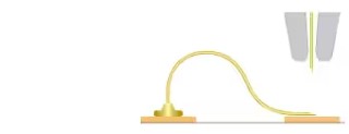 3.리드 전극과 접속할 때는 볼을 형성하지 않고 캐필러리로 와이어를 찌부러트려 접합합니다. 이 접합을 Stitch Bonding 또는 2nd Bonding이라고 합니다.